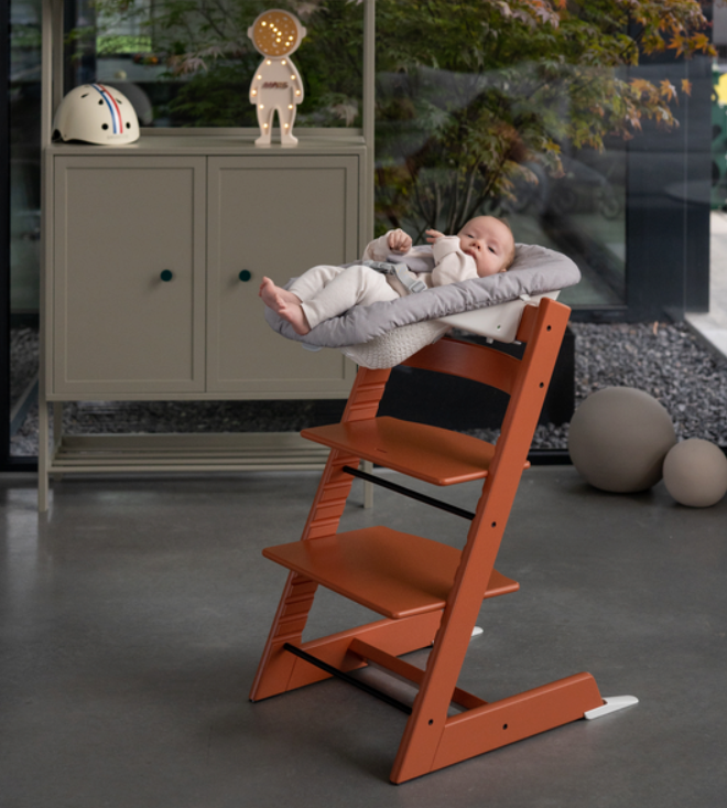 We recommend choosing a high chair style based on your child's habits and family preferences. For families who prefer simplicity and travel-friendly options, we recommend the Clikk™ high chair. It is detachable and convenient to bring along, fitting easily into a suitcase. If you're looking for a high chair that will be a long-term companion for your child at home and can also be used by adults, we recommend the Tripp Trapp® and Nomi®. It can be used from infancy and can be adjusted with different accessories to accommodate various age ranges as your child grows.