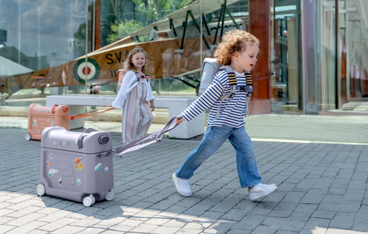 The Stokke® BedBox™ is a great example of a suitcase kids can pull, ride, and carry on their themselves.
