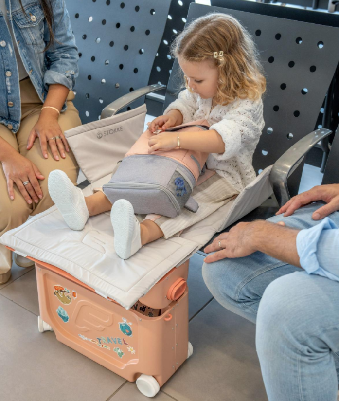 Pack your bags and get ready to go! Put your baby's small clothes into your baby's exclusive Jetkids™️ by Stokke®️ children's luggage, put on your JetKids small backpack, and set off immediately🌞