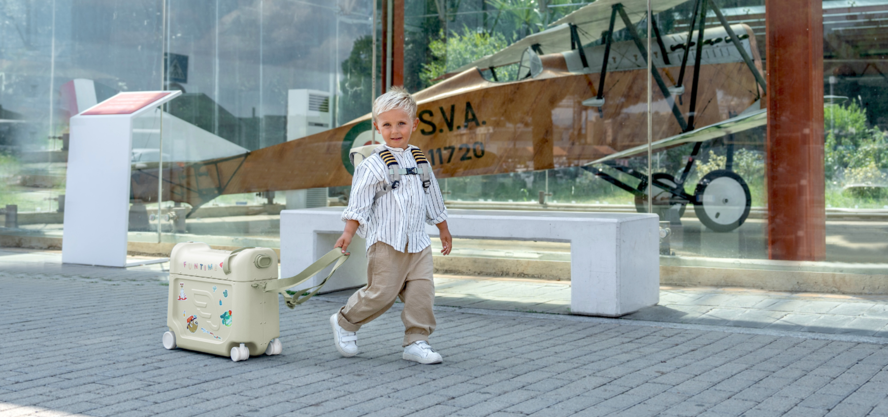 Pack your bags and get ready to go! Put your baby's small clothes into your baby's exclusive Jetkids™️ by Stokke® children's luggage, put on your JetKids small backpack, and set off immediately