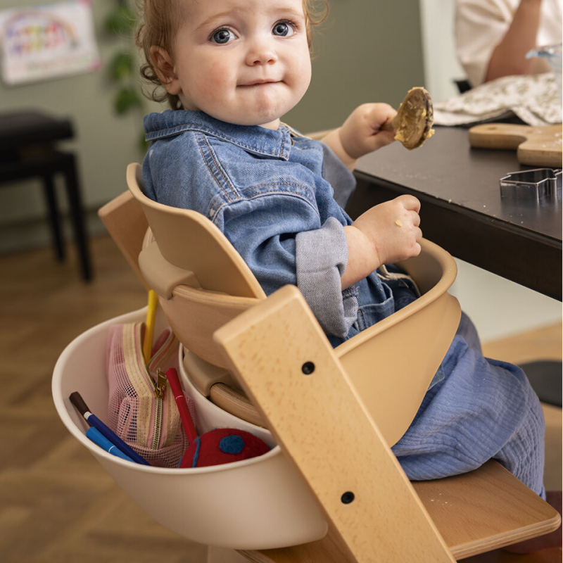 專為 Tripp Trapp® 標誌性成長椅設計,Tripp Trapp® 收納盒為小空間收納而生。精心設計,與 Tripp Trapp® 無縫接合,更能整潔收納寶寶飯間的“必備好物”;寶寶的圍兜和玩具也可放在顯眼好找的地方。當以後孩子長大了,他們還可以把一些遊戲的小玩意兒和繪畫用品等放在最愛的成長椅上,以供一家人圍桌而坐、共度歡樂美好時光。這意味著 Tripp Trapp® 收納盒的使用期限和 Tripp Trapp® 成長椅一樣長久,從孩子出生到步入成年都可以使用。 Tripp Trapp® 收納盒可以輕易從成長椅上拆卸下來,放在孩子們互動、玩耍的地板或桌子上。該產品適用於所有 2003 年之後生產的 Tripp Trapp® 成長椅,更適配於所有 Tripp Trapp® 配件!